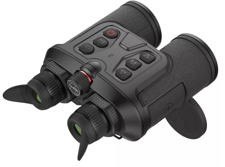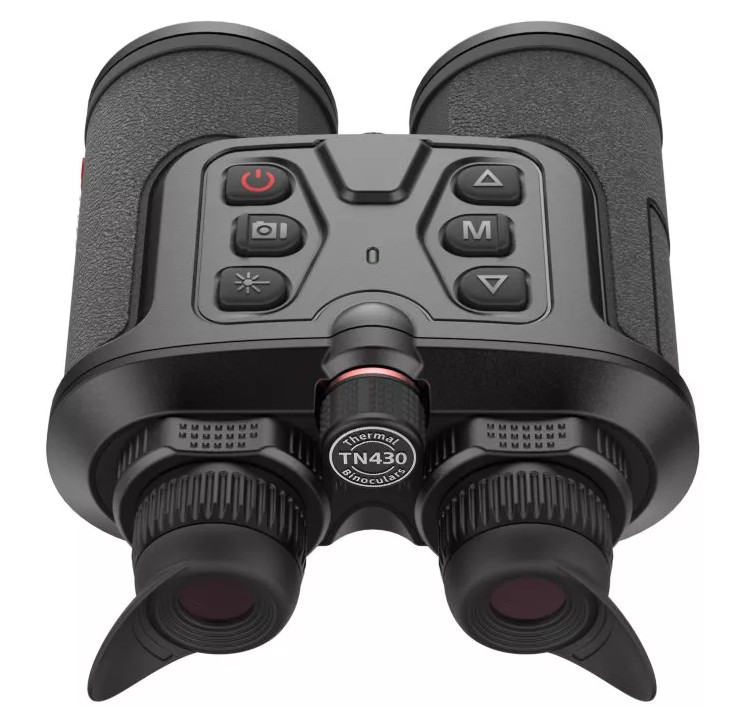 Бинокулярное зрение. Удобная подстройка и фокусировка. Тепловизор Guide TN430 выглядит как оптический бинокль, однако это конструкция с одним ИК-объективом (второй «объектив» — это блок дальномера) и двумя микродисплеями, по одному в каждом окуляре. Благодаря тому, что изображение с объектива транслируется одновременно на оба экрана, улучшается восприятие глубины и контраста, а глаза во время длительных наблюдений устают намного меньше, чем при работе с аналогичным монокуляром. Механика тоже понятная, удобная и привычная, как у дневного бинокля с барабаном центральной фокусировки и раздельной диоптрийной подстройкой.