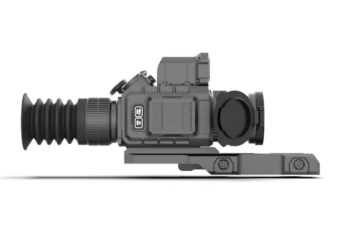 Управление ведётся одной кнопкой — 5-позиционным джойстиком на боковой панели. Джойстик легко найти даже на ощупь в темноте, а заниматься настройкой прицела-тепловизора можно буквально одним пальцем, не снимая с руки перчатки. Для питания используется комплект из 2 батареек 18650 (длина 65 мм) с плоскими контактами. На полном заряде прицел проработает до 8 часов — это вдвое больше, чем у предыдущего поколения тепловизоров ConoTech.