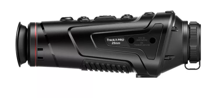 Отличная эргономика. Удобная эксплуатация. Тепловизор TrackIR Pro 25mm весит 490 грамм и не занимает много места в рюкзаке, хорошо переносит морозы и жару (-10/+50 °C), отлично защищён от пыли и ливневых осадков (IP66) и и не сломается после падения в мягкий сугроб с метровой высоты. Управление понятное и удобное, хоть левой, хоть правой рукой; кнопки выпуклые, фигурные и с индивидуальным «рисунком», совершенно бесшумные и безошибочно опознаваемые даже в темноте на ощупь. Для защиты от боковой засветки есть скошенный наглазник, а наличие диоптрийной подстройки даёт возможность работать с тепловизором тем, кто носит очки. Прибор можно поставить на штатив (1⁄4“) , а сбоку корпус навесить планку под дополнительные аксессуары типа фонаря или дальномера.