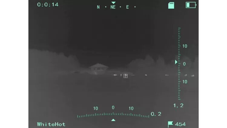 Отличный набор встроенных функций для полевых наблюдений. Отслеживание горячих точек позволит быстро найти зверя среди фоновых объектов, а красный ЛЦУ сработает как лазерная указка и «покажет» нужную цель как наблюдателю, так и охотнику. Для масштабирования картинки и улучшенной детализации целей есть дискретный цифровой зум 2x/4x и режим PiP 2x. С указанием направления «справится» электронный компас, а гироскоп проконтролирует угол наклона и бокового завала, например, при установке тепловизора на неровной поверхности. Все данные выводятся на экран в поле зрения и всегда доступны для спасателя или охотника.