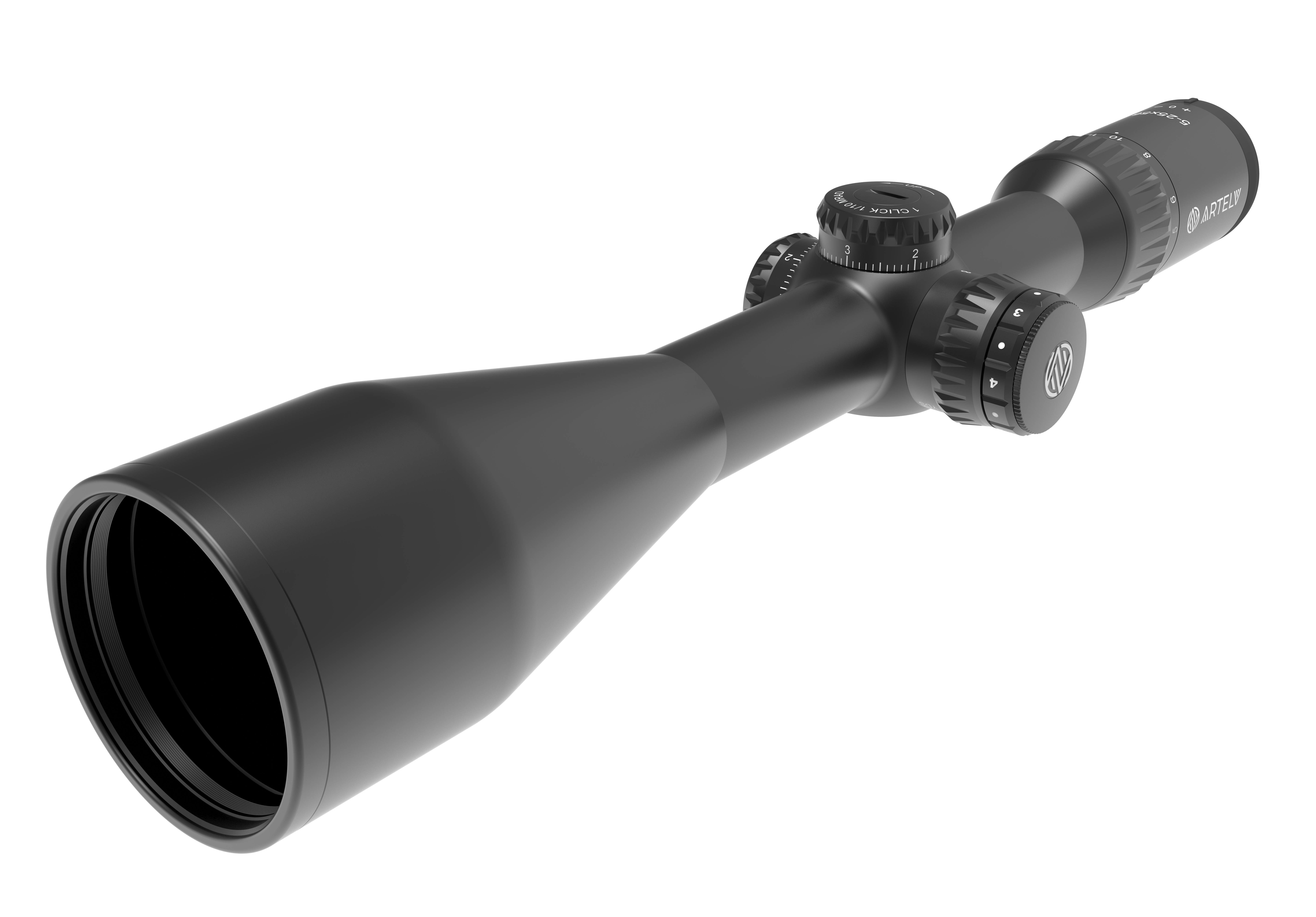 Сферическая линза объектива прицела Artelv LRS 5-25x56 FFP с уменьшенной хроматической аберрацией и повышенным коэффициентом преломления обеспечивает ясное и детализированное изображение с естественным контрастом, исключая появление искусственных оттенков и эффекта «туннеля».